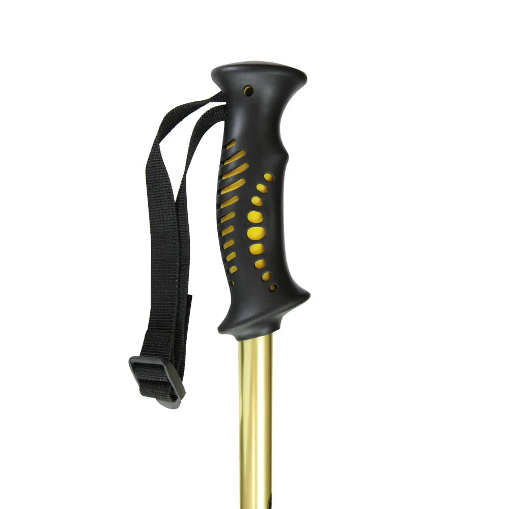 - Ajustável: Com ajuste de altura entre 65cm a 135cm, o bastão se adapta facilmente às necessidades de diferentes usuários e terrenos.